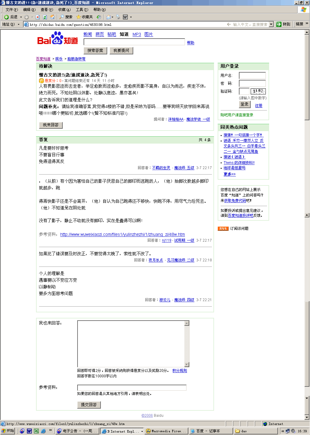 偶然的机会,发现“百度知道”的帖子中,有引用本人网站的内容,觉得很惊